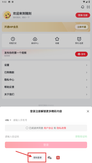 3、在登录方式选择中,点击密码登录选项,进入密码登录页。