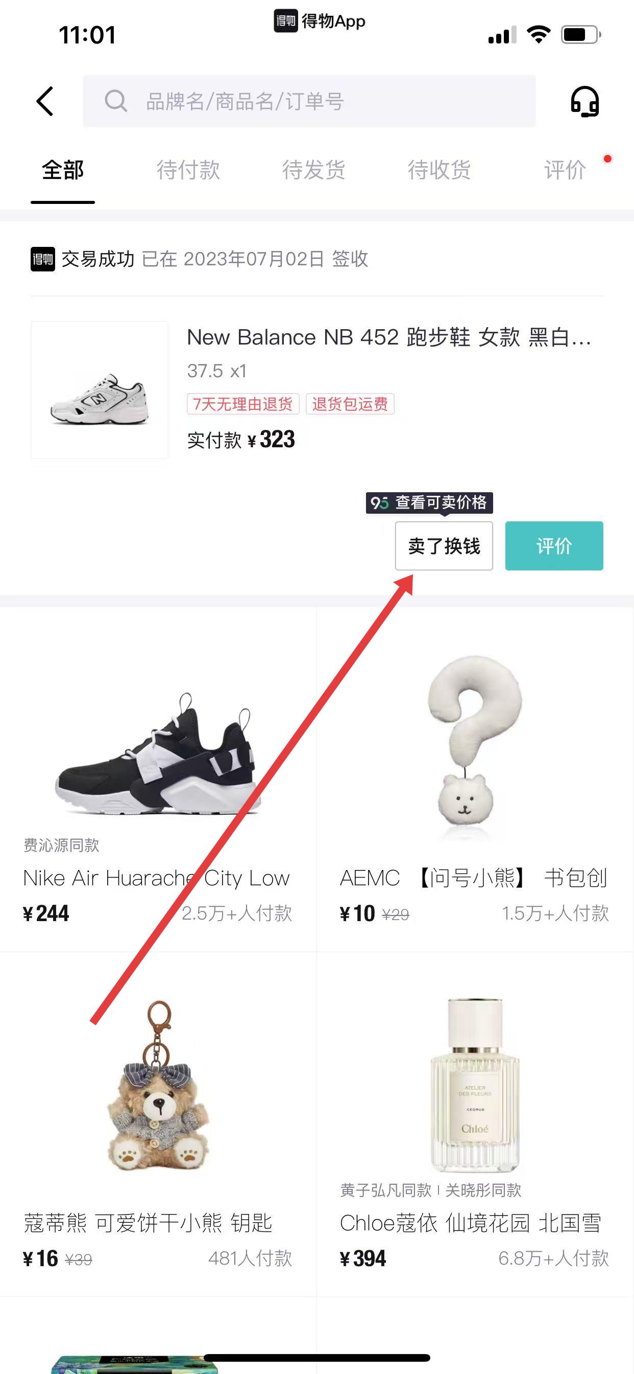 2、在全部订单中,找到想商品的右方的卖了换钱按钮。