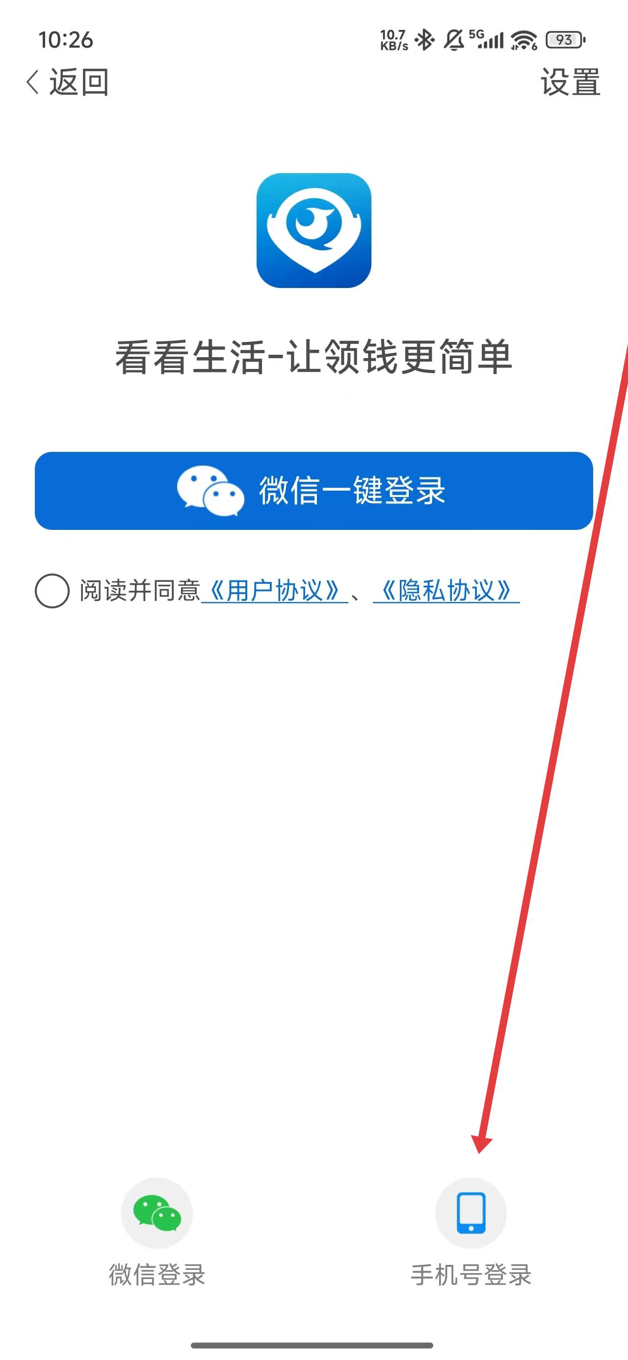 2、在进入到登录页面中,可以点击下方手机号登录按钮,切换登录方式。