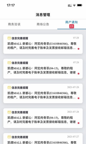 凯德星联结合现有的业务系统,建立凯德与租户之间服务及沟通的数字化工具。租户可以通过本软件实现信息共享、实时消息提醒、在线签约、服务申请、销售管理、账单查询、票据管理等业务。
