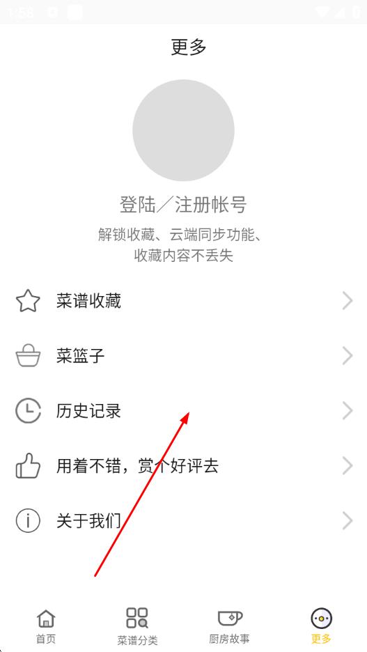 2、在“更多”页面里,找到并点击历史记录选项。