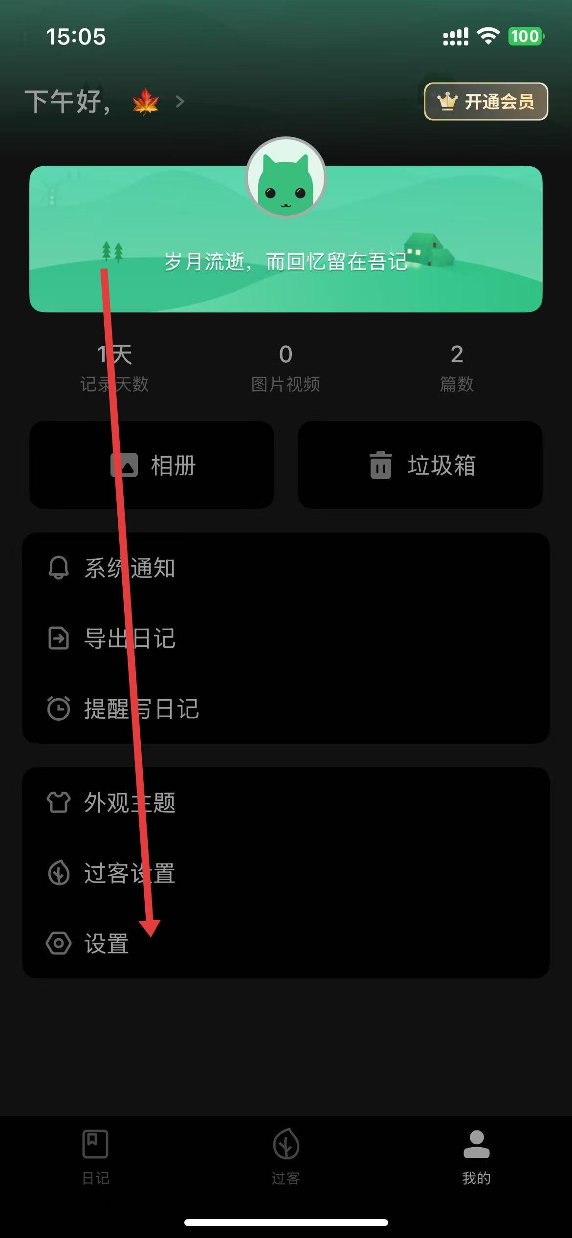1、打开吾记日记APP,点击底部导航栏最右侧的我的选项,进入个人页面。