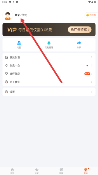 1、在应用我的页面,点击左上角登录/注册按钮,进入掌上公交的登录界面,开启账号登录流程。