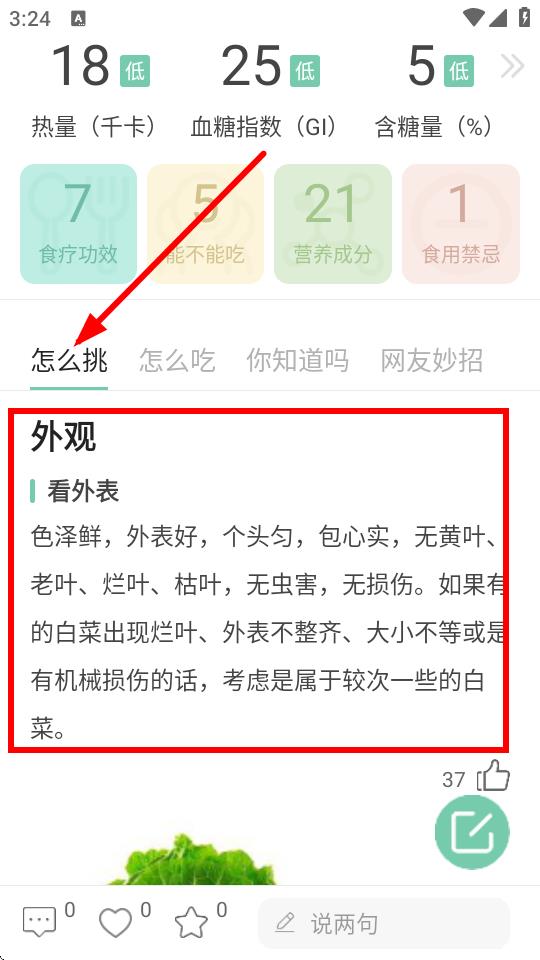 4、在产品详情页面,点击怎么挑选项卡,就能看到该产品的挑选方法。