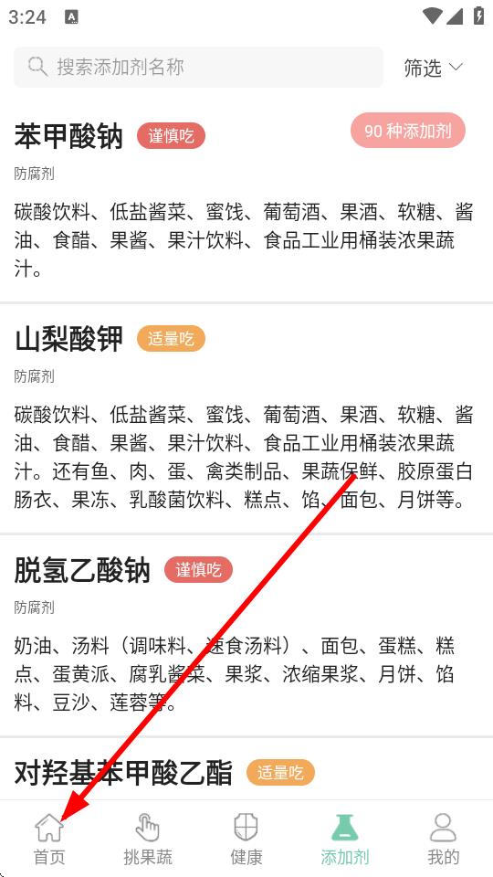 1、打开果蔬百科app,点击底部导航栏中的首页,回到首页界面。