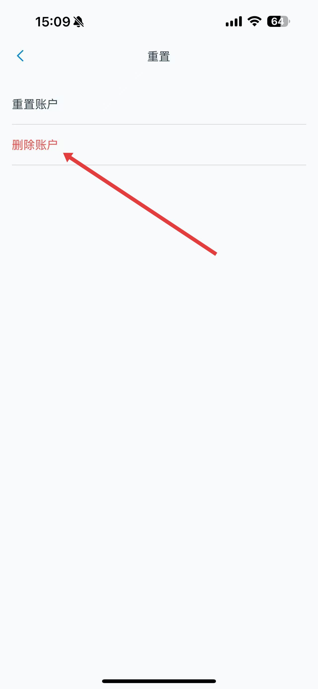 4、在重置页面中,点击删除账户,按后续提示操作即可注销账号。