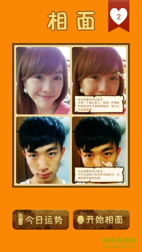 1、一款手机自拍看相、测姻缘的算命软件。
