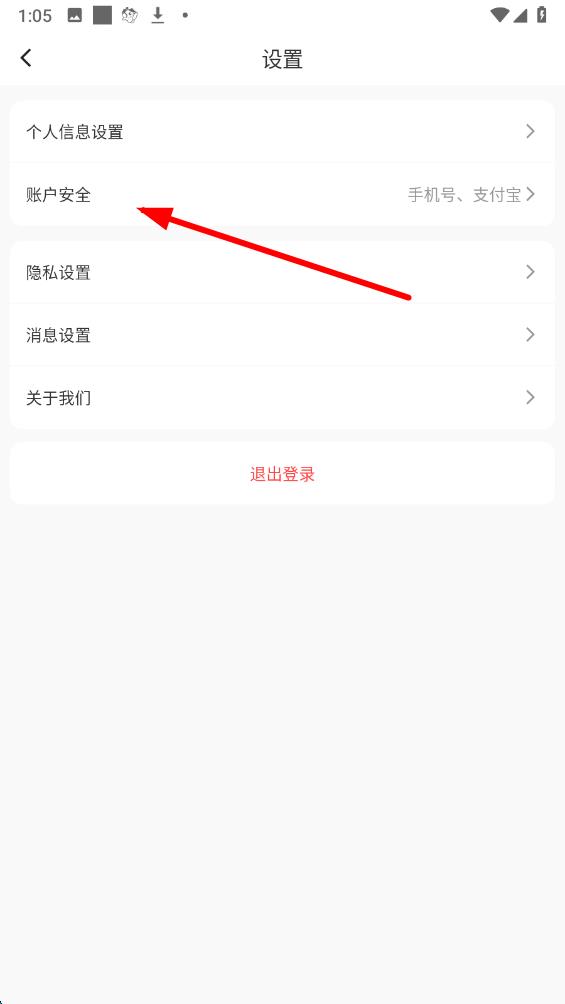 2、在设置界面中,点击账户安全的选项,进入账户安全页面。