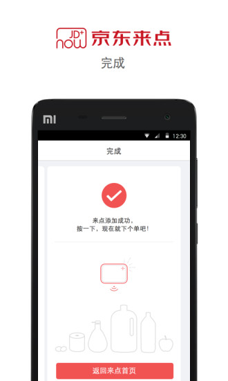 4、连接网络后,可将来点随意放置在家中任意地方,当需要购买时,仅需点击来点即可完成一键下单。喜欢的,就在手边优质商品,触手可及,随时享用。