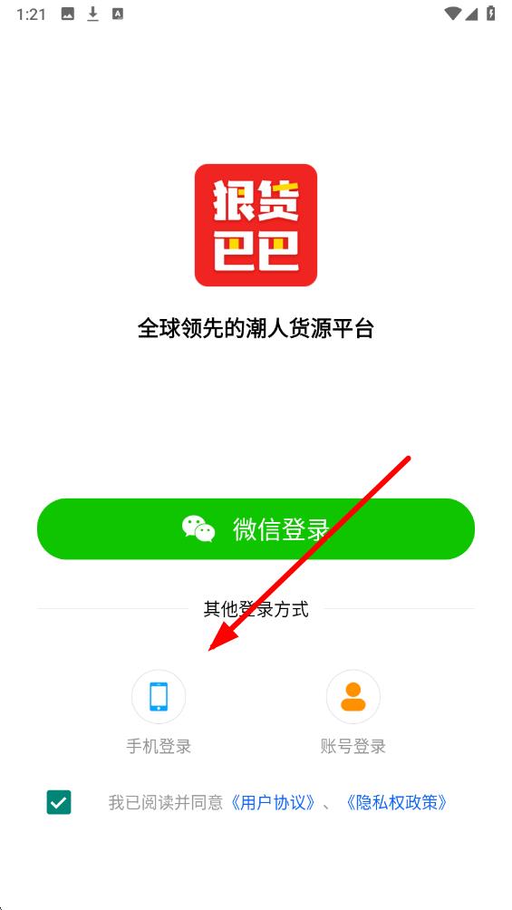 2、在登录界面中点击其他登录方式下方的手机登录选项,若没有注册过账号使用此方式可完成注册。