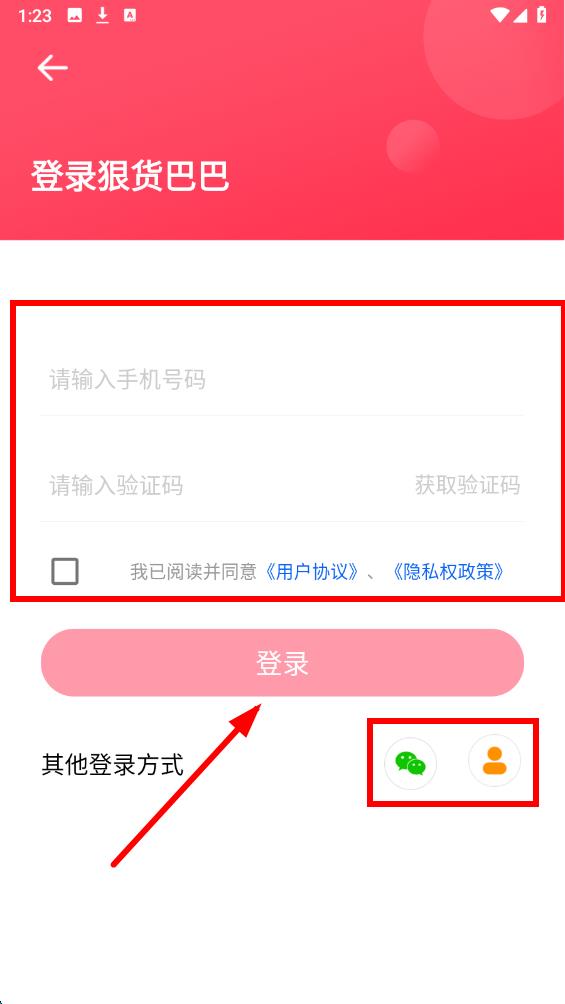 3、进入登录界面后,在对应输入框内填写手机号码和验证码后勾选同意用户协议,点击登录按钮即可完成注册登录操作,还可以使用第三方直接注册登录。