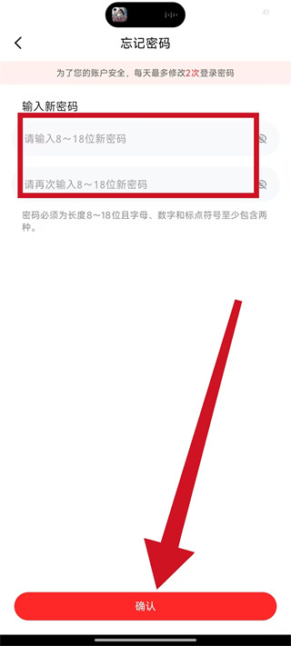 4、在新密码设置页面,按要求输入密码,重复输入后点击确认,完成密码修改。