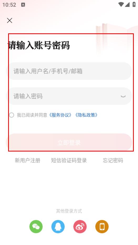 4、在登录页面,输入信息勾选协议后点击立即登录,进行书籍购买操作。