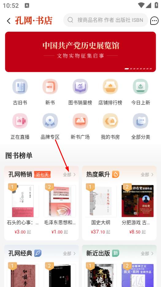 2、在孔网书店页面,点击孔网畅销后的全部,进入孔网畅销榜页面。
