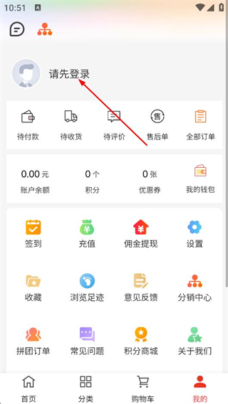 3、在个人页面中,点击请先登录区域,进入登录选择页面。