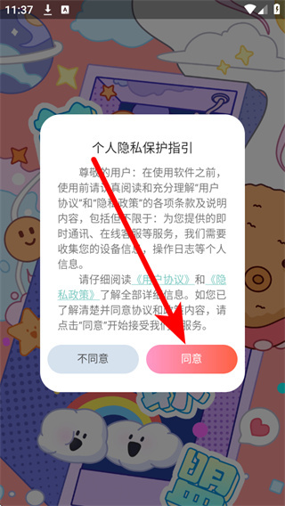 1、打开萌爪联盟,进入后弹出弹窗,点击同意,进入登录方式选择页面。