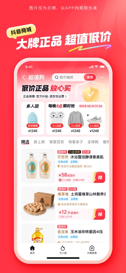 抖音商城是抖音平台专属推出的购物软件,可直接与抖音账号无缝连接,同步接收好友信息,日常浏览体验更顺畅,无论是查找商品、发布购物评价,操作流程简洁高效,短时间内即可完成,平台不定期发放优惠券,用户随时领取就能降低消费支出,节省购物成本。