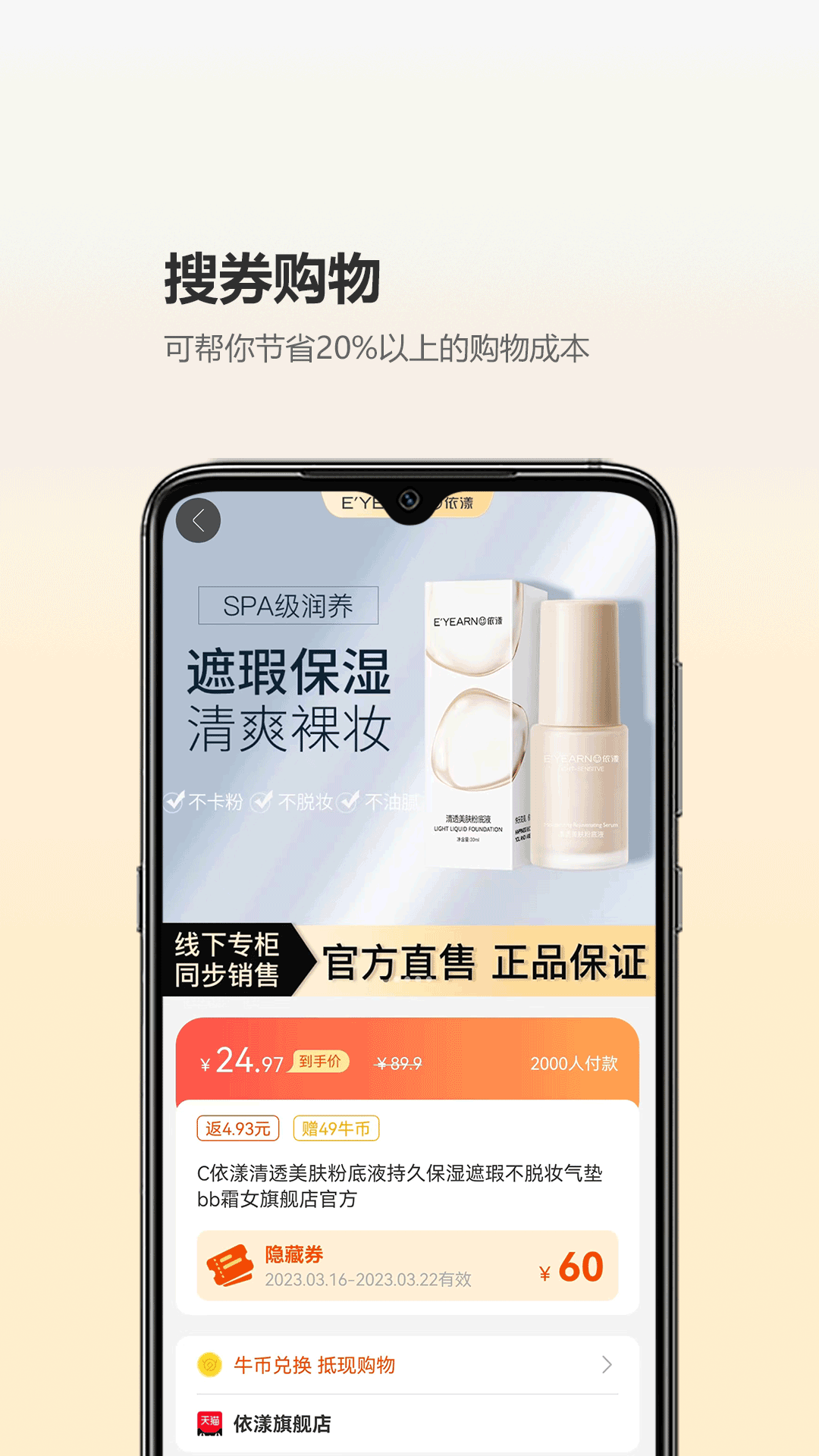 1.在领取优惠券购物的同时还可获得佣金返利。