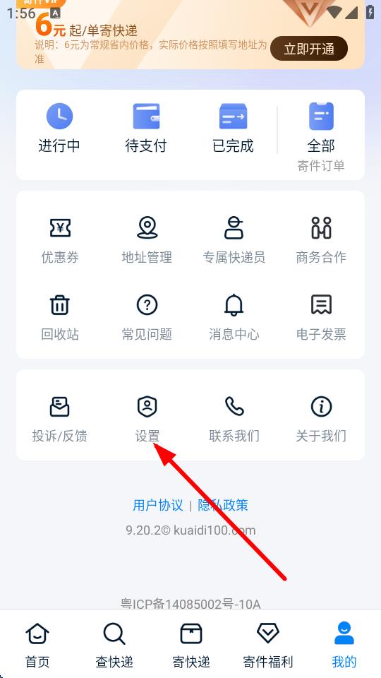 1、打开快递100应用,点击底部导航栏最右侧的我的选项。
