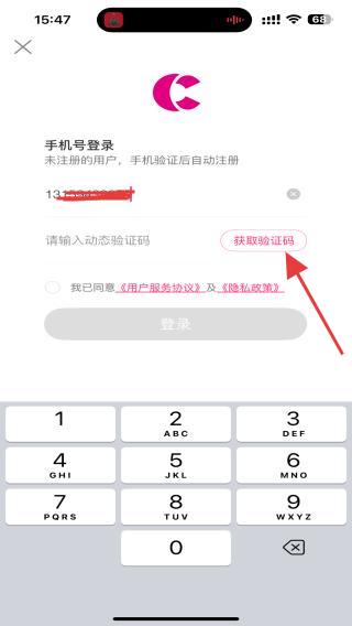 3、在手机号登录的界面内,输入手机号并点击获取验证码。