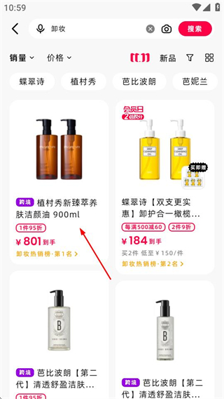 2、在分类页面,选择卸妆分类,进入卸妆商品列表页面。