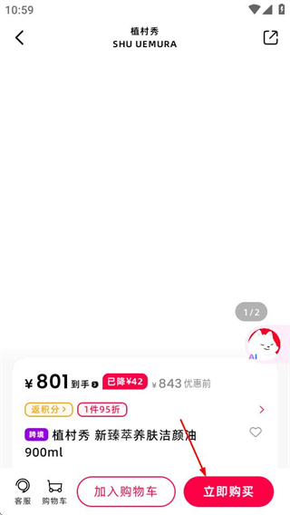 4、在商品详情页面,点击立即购买按钮,可完成商品的购买。