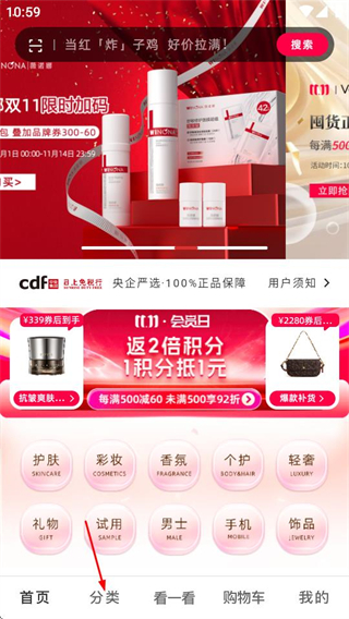 1、在日上免税店首页,点击分类选项,进入分类页面。