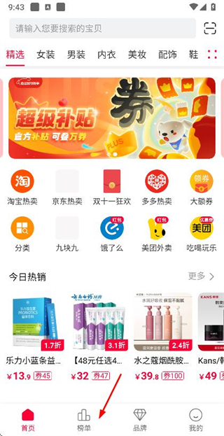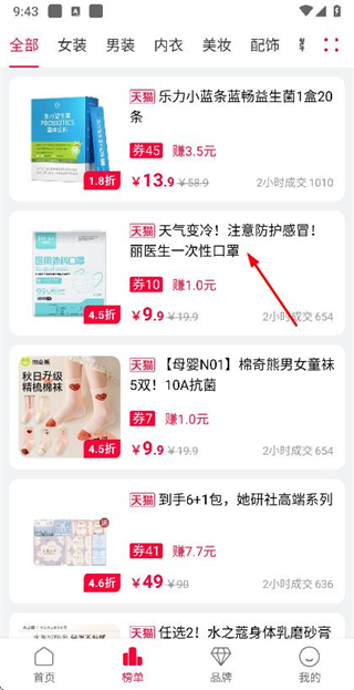 1、在首页点击底部的榜单选项,进入榜单商品列表页面。