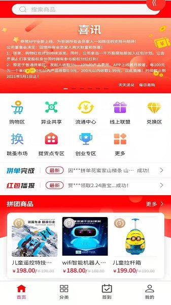 派兑易购app是一款优惠好用的手机购物平台,用户在这里可以享受到最优惠的价格,每天上新供你选择,商家在这里可以一键开店,无需手续费和门槛,多种营销方式帮助您开店赚钱,让您日进斗金。感兴趣的用户快来下载吧!
