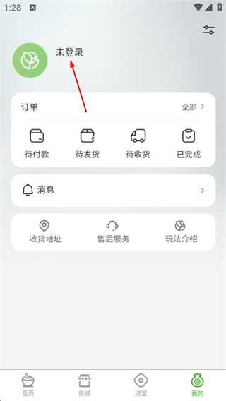 2、在个人页面,点击未登录区域,进入手机号登录页面。