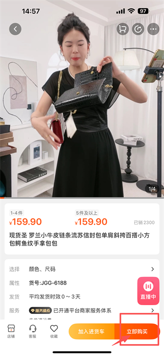3、在包包商品列表页,点击现货圣罗兰小牛皮链条流苏信封包商品,进入商品详情页。