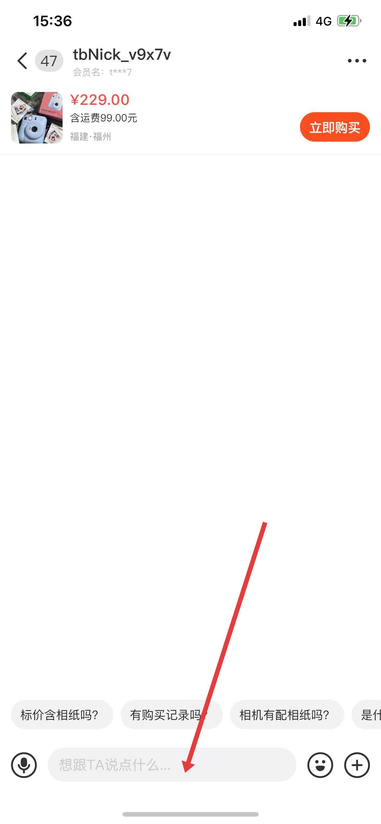 2、在商品详情页底部,点击聊一聊按钮,进入聊天界面。