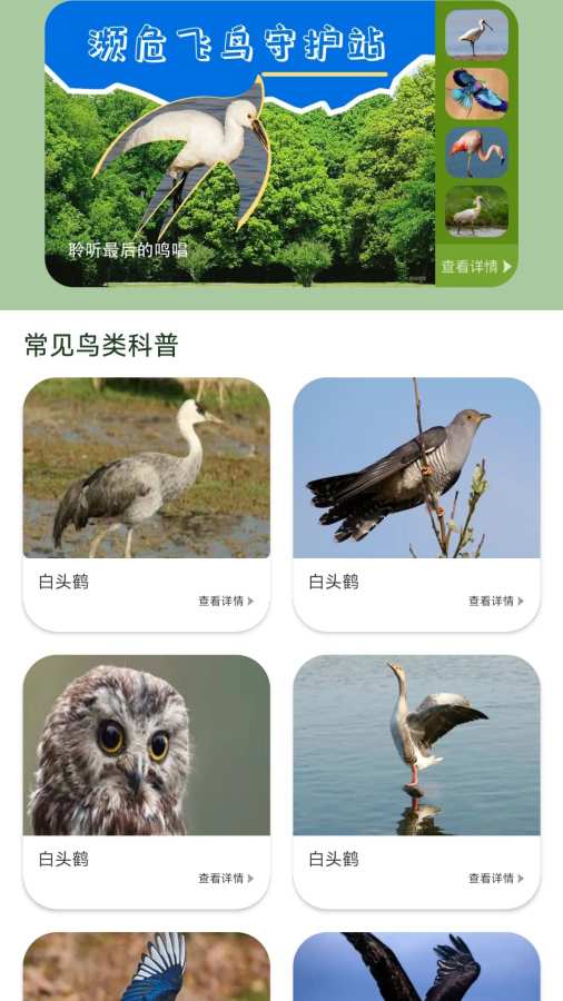 - 濒危飞鸟守望:聚焦濒危飞鸟信息,传递生态保护理念。