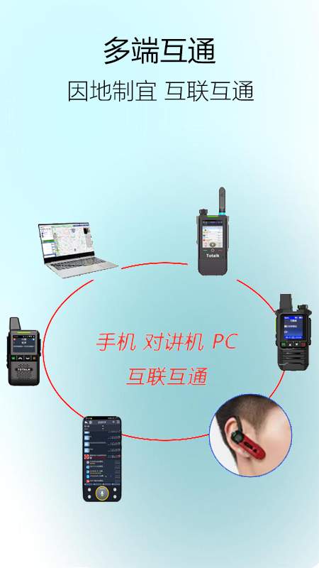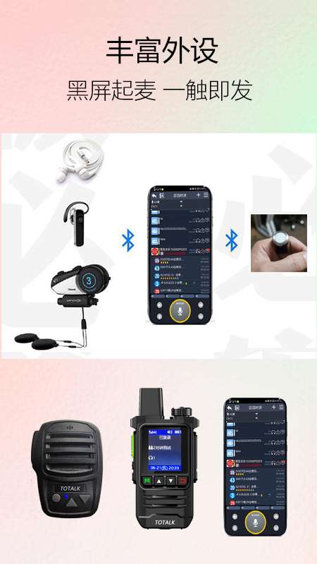 功能强大的公网对讲平台兼顾公众用户自由组队和企业客户可管可控的需求手机APP、专业对讲机、蓝牙外设等,互联互通