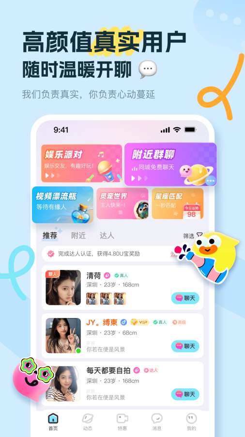 友趣是一款以真人实时视频为核心,融合多元娱乐场景的综合娱乐社交平台,为你带来全新的社交体验。在这里,每一次互动都充满温度与惊喜,让你在虚拟世界中也能感受到真实的连接与快乐。