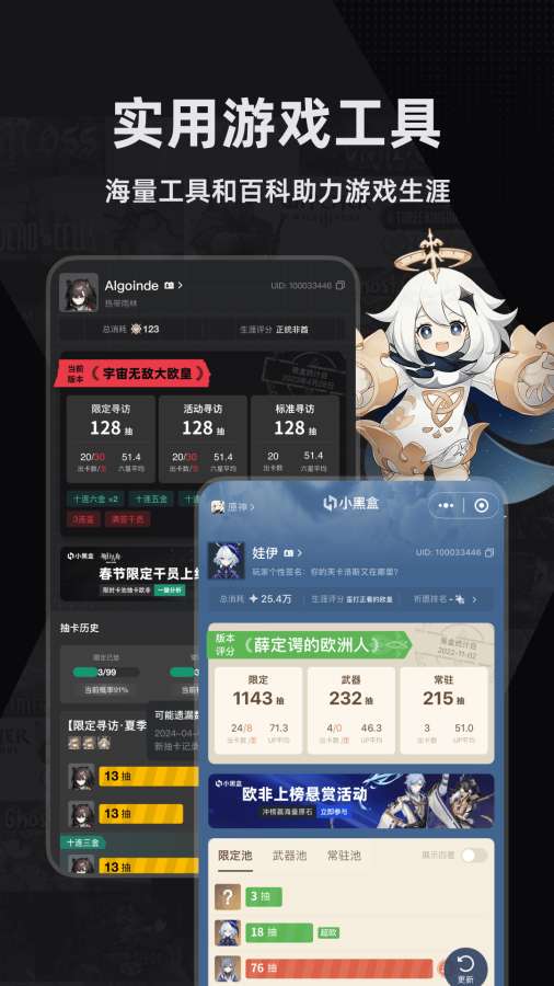 「小黑盒」是一款专为游戏玩家定制,集新闻资讯、百科工具、内容社区、战绩查询、游戏商城为一体的专业应用。上百种游戏定制工具,每日8000w+优质内容曝光,累计5000w+玩家的选择,一盒在手,游戏无忧,助你一站变身游戏达人!