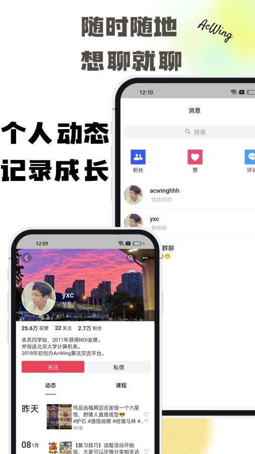 AcWing是一款校园社交类APP。在这里有超多同学的日常动态分享,陪伴你学习生活的每一天。 【日常生活,尽在“说说”】记录生活妙事,学业难题,经验分享。无论是学习还是生活,同学们的日常点滴都在这里! 【实时热榜,搜尽天下事】搜题目,搜知识,搜校园生活动态,你需要的内容都在这里! 【随时随地,想聊就聊】移动端网页端实时同步,绝不错过任何一条。 私信聊天,一点即可,沟通无距离。 来自应用汇: AcWing