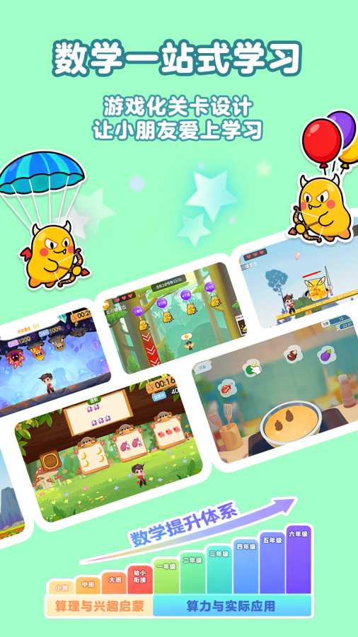 120+主线关卡,1000+数学题型,包含时间认识,四则运算、几何与空间、逻辑思维4大主题,实现数学启蒙全覆盖。