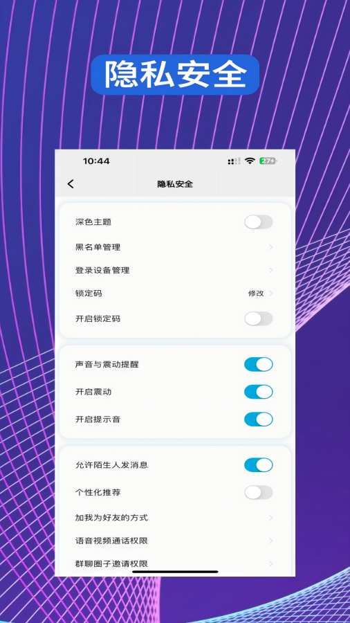 2、聊天保护:已读回执、解锁密码等聊天隐私保护功能