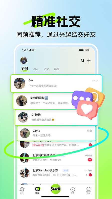寻找骑行、跑步、台球、棒球、网球等运动搭子,结识同好,加入你感兴趣的同好群组,扩大社交半径。