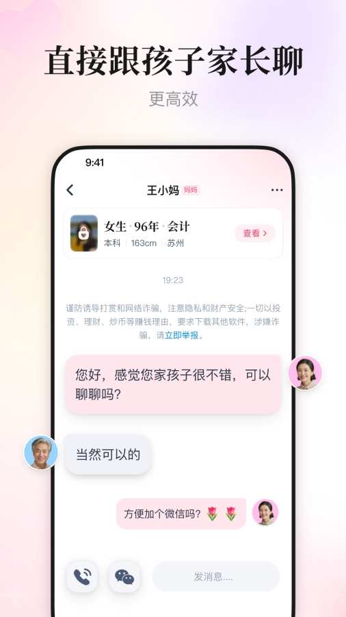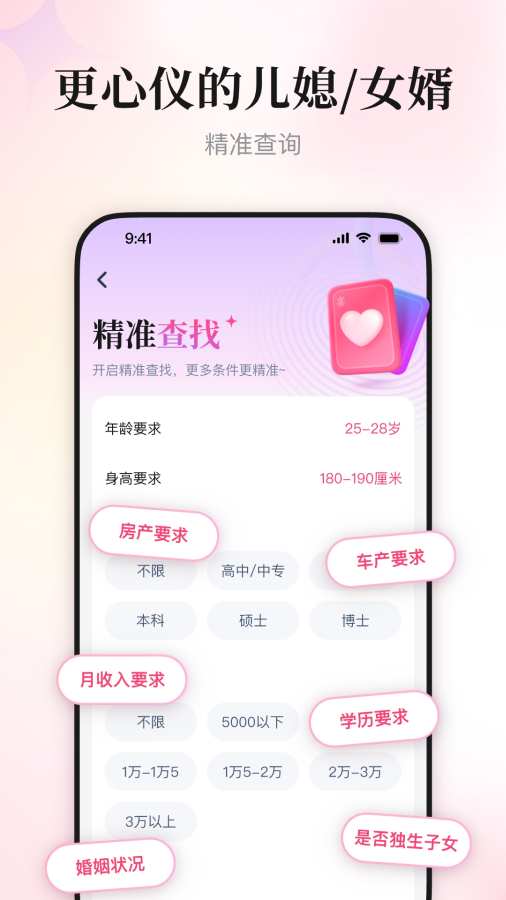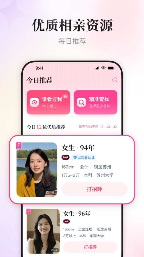 给孩子找对象,就上喜姐相亲,父母先把关每天根据孩子的择偶条件,精心挑选12位相亲卡早上7点自动更新,合适即可父母先沟通全量用户筛选,更多更详细的择偶筛选条件实名认证,跟靠谱的人相亲孩子工作太忙、圈子太小、没时间都不再是单身的理由~ 来自: 喜姐相亲