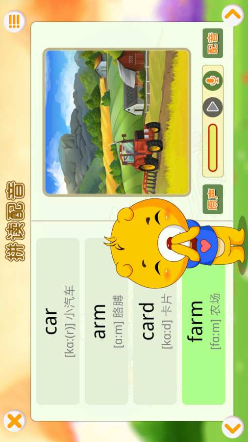 英语音标教学软件,学音标、认单词、玩游戏,寓教于乐。48个国际音标,权威教学资源,全部真人发音,超清晰、准确、完整,特别适用于英语初学者。