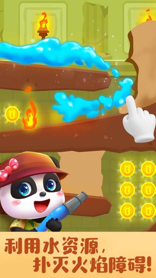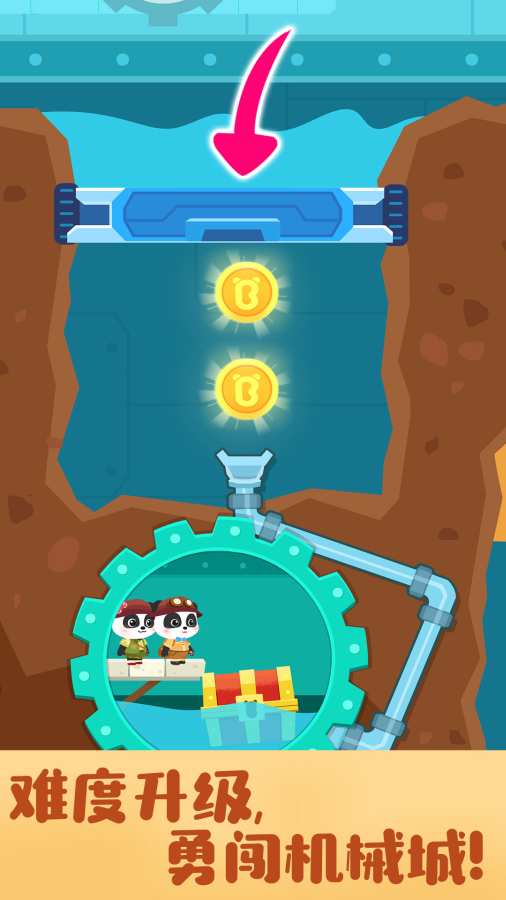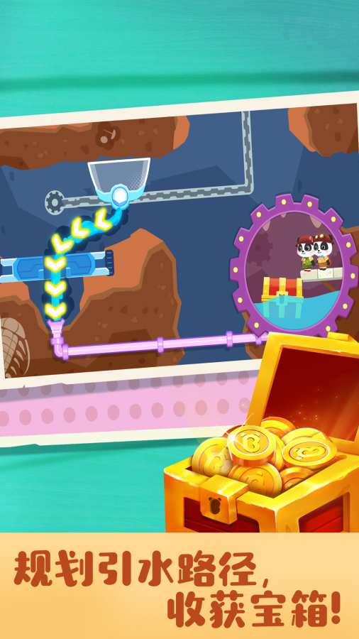 规划水流路径,利用水的浮力,让宝箱浮上来!挖掘土块,控制水的方向。前方有障碍物,注意躲避。这一环节的设计,不但考验了宝宝的应变能力,还将测一测宝宝的空间布局能力。