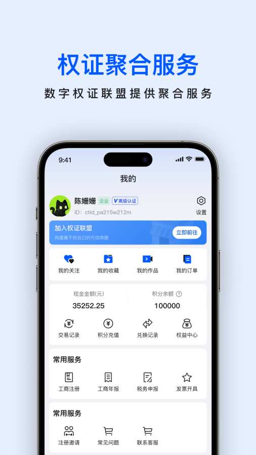 数字身份:基于CTID+可信身份认证服务,搭建全平台统一身份认证体系,用个人数字身份作为全平台的可信身份,创建可跨平台登录的可信账号。