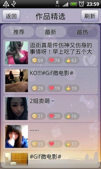 1.Gif微电影社区功能满足玩家通过手机软件就可以看到自己及别人分享的各种有趣好玩的GIF作品,并可以和其他玩家互动。