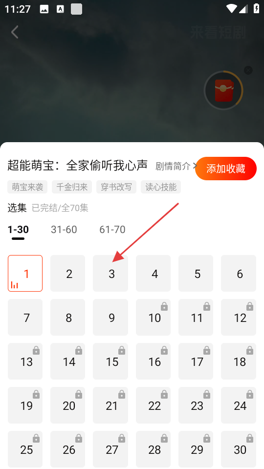 4、在选集页面,选择想要观看的集数,比如第3集,即可播放该集内容。
