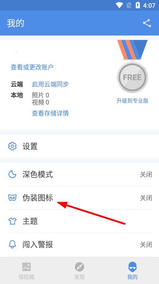 2、在我的界面中,找到伪装图标选项并点击进入。