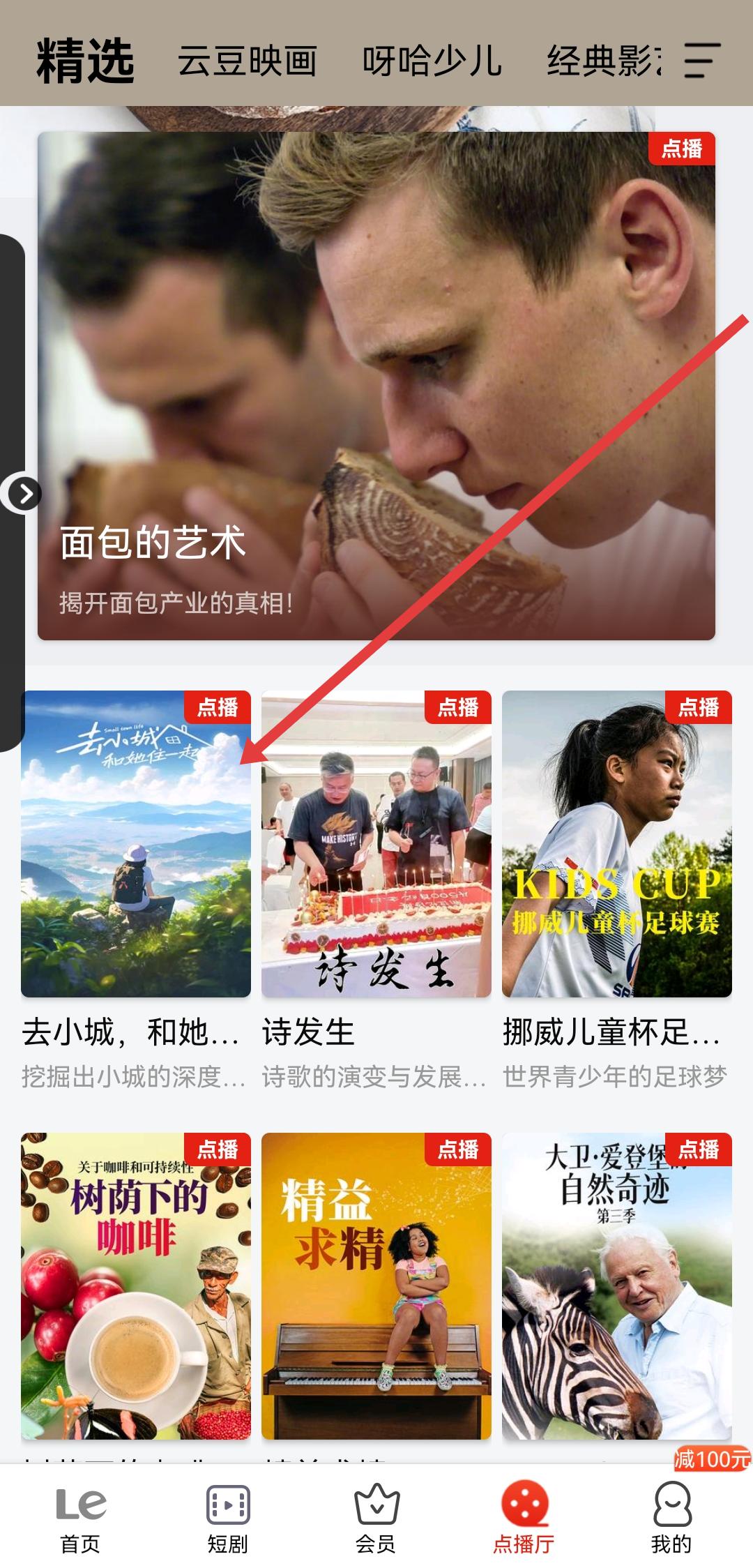 2、往下滑找到纪录片的分类,点击进入纪录片专属的专区,该专区会汇聚自然等多题材的纪录片资源。