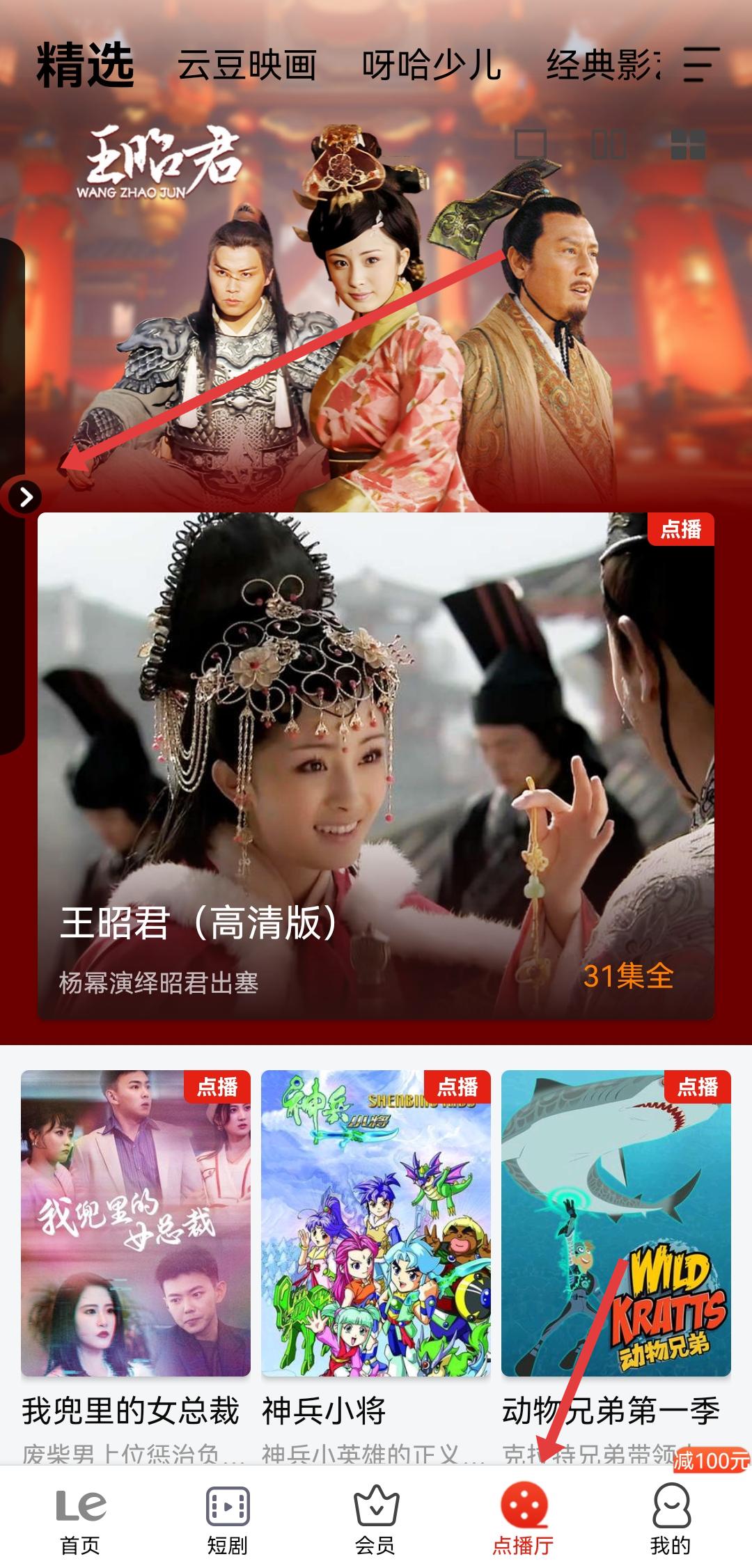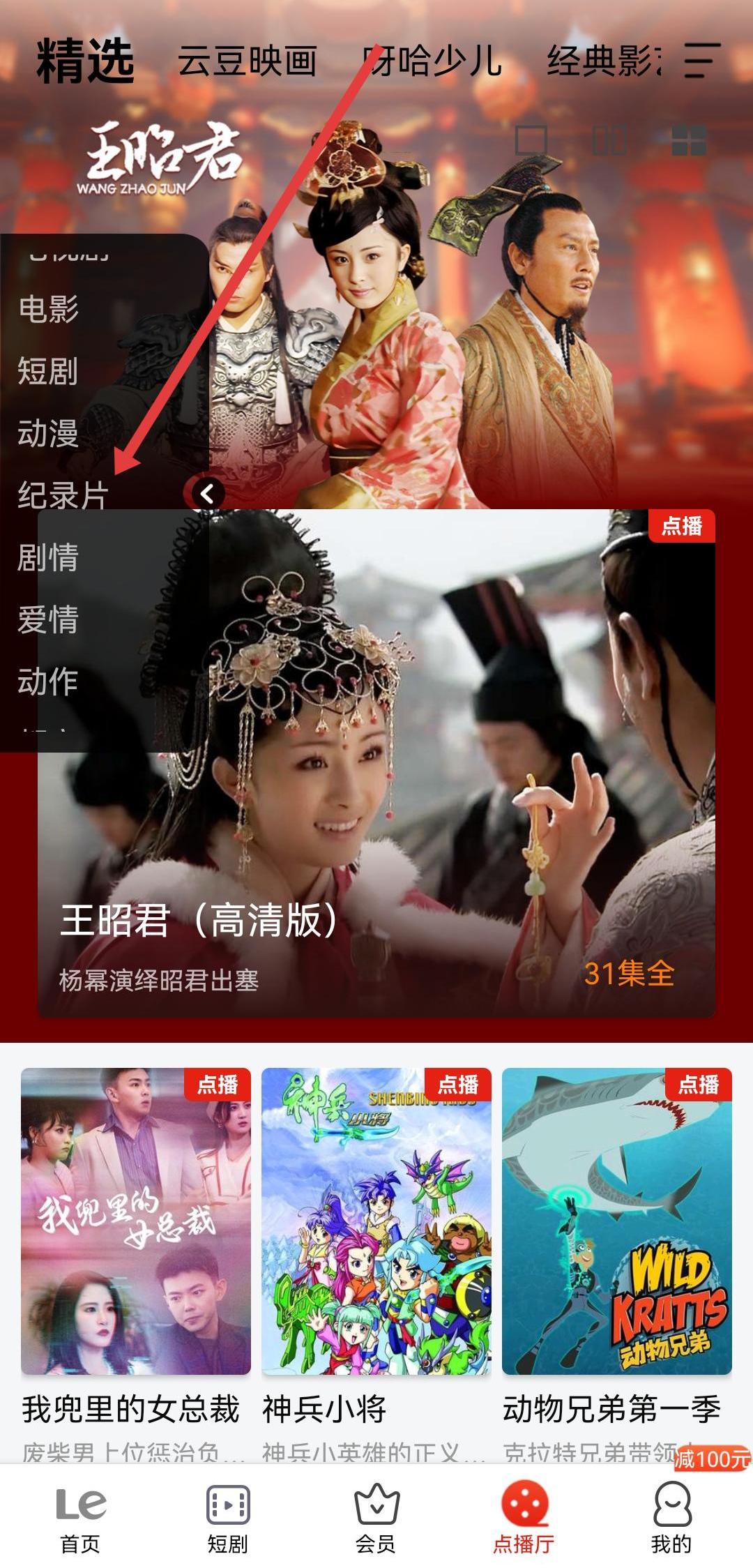 1、进入主界面后,需要先点击进入点播的页面,然后点击页面左侧的分类区域。