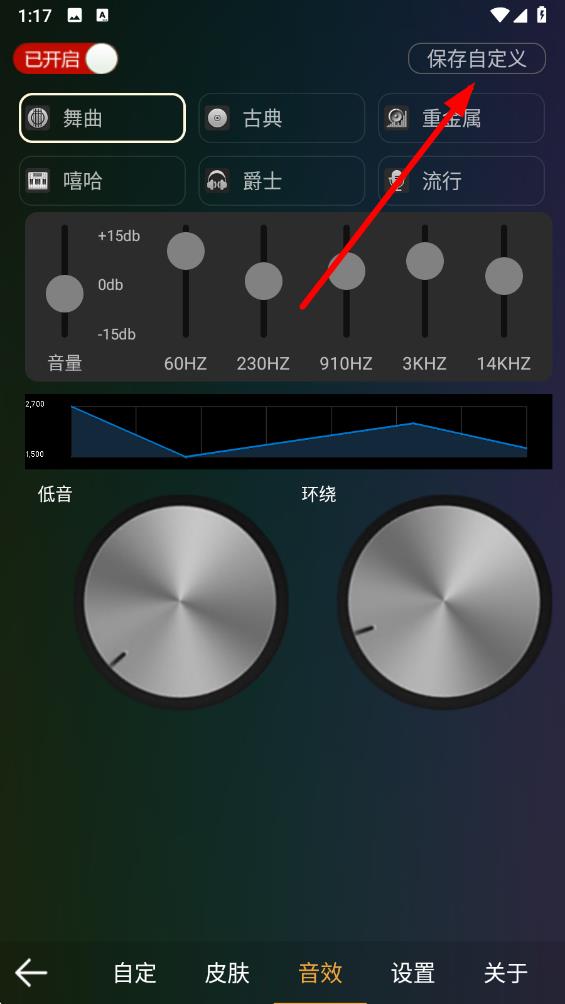 4、完成音效调整后,点击界面右上角的保存自定义按钮,留存设置,下次打开即可使用自定义音效。